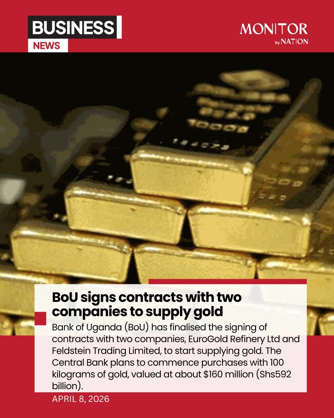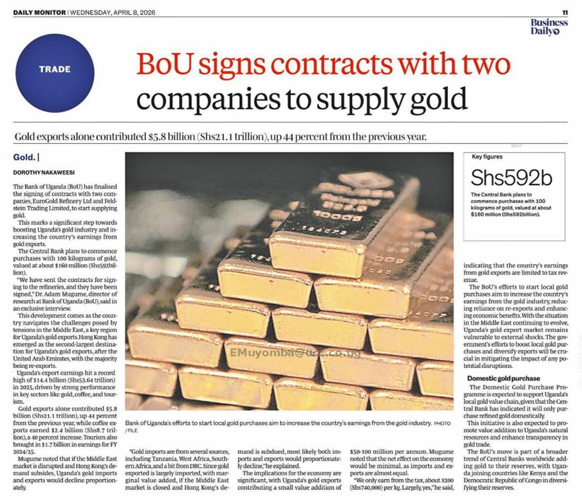Business Daily (Daily Monitor): Euro Gold Refinery Secures Role in Uganda’s Shs592 Billion Gold Deal